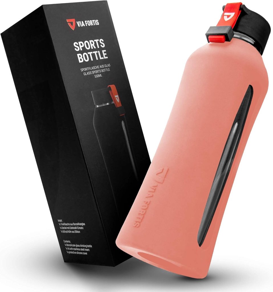 Fabriquée en verre borosilicate de haute qualité, elle est enveloppée d’une protection en silicone qui assure une longévité accrue même en cas de choc léger. Son esthétique épurée et sportive en fait un accessoire polyvalent, aussi à l’aise sur un bureau que dans un sac de sport.