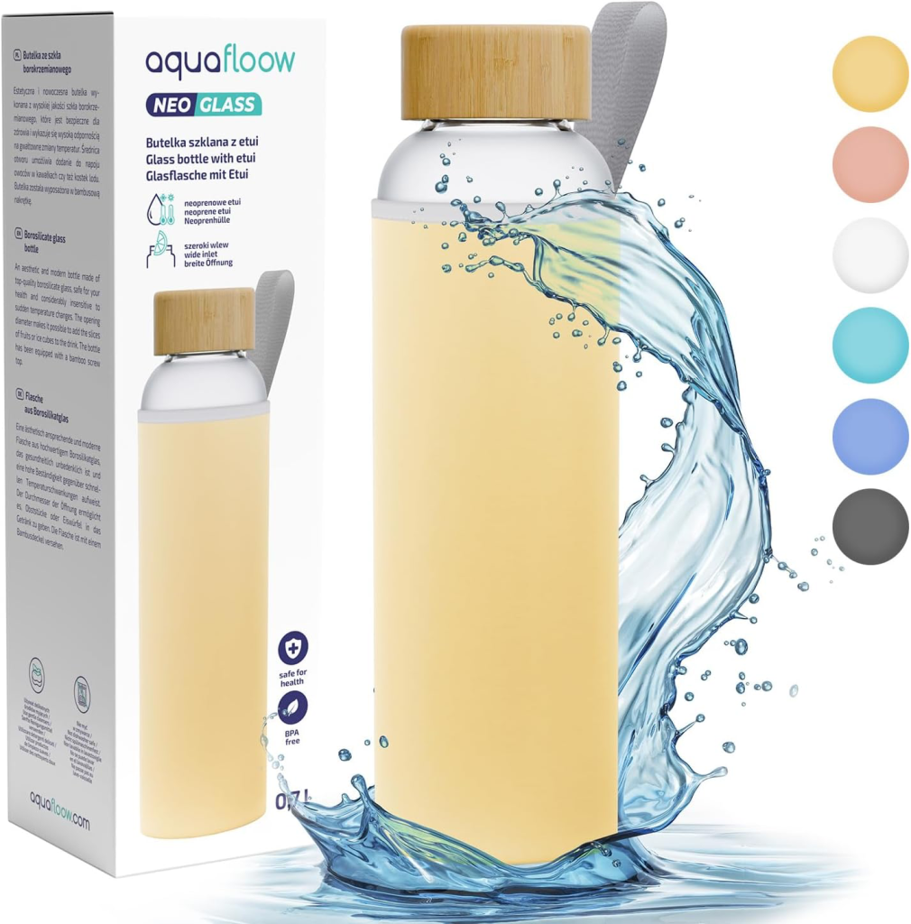 Grâce à son design transparent et ses marqueurs de temps, elle permet de visualiser en un coup d’œil la quantité d’eau bue. Sa fabrication en verre borosilicate assure une pureté de goût inégalée, tandis que sa housse de protection apporte une touche de couleur et une sécurité supplémentaire au quotidien.